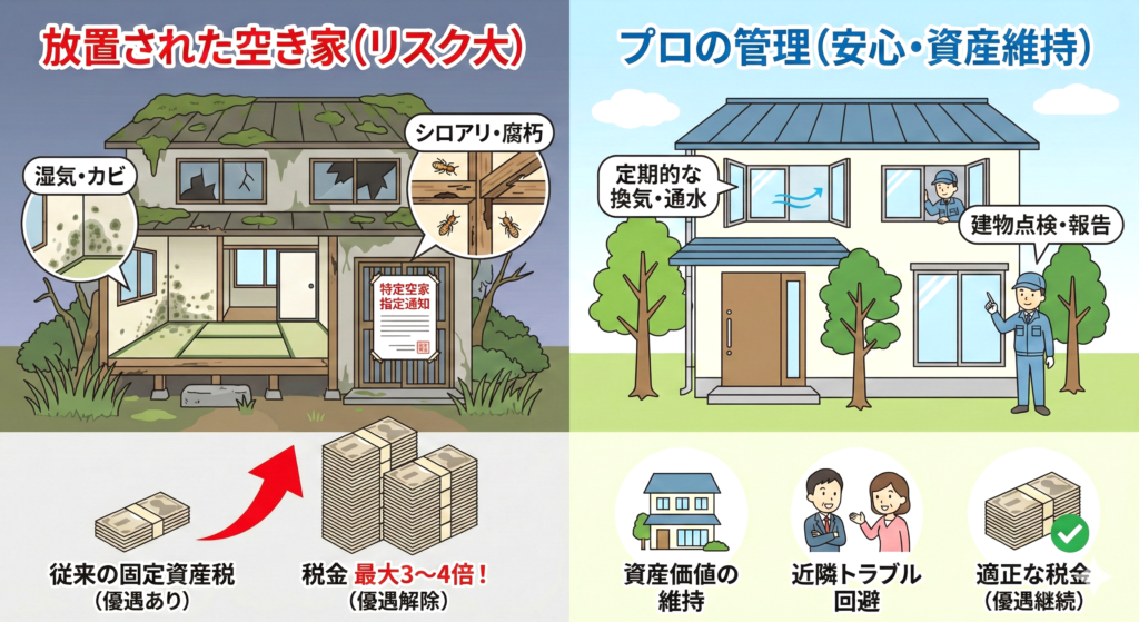 大切なご実家を守り、無駄な税金やご近所トラブルを防ぐためには、定期的な「プロの管理」が不可欠です。
